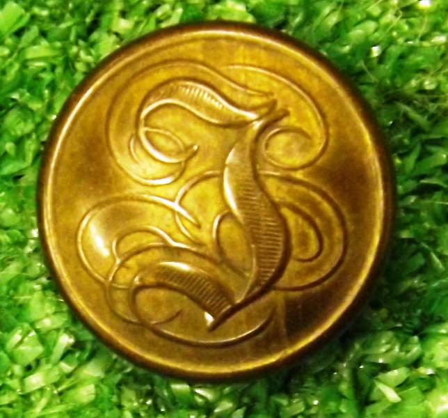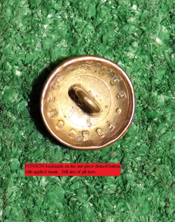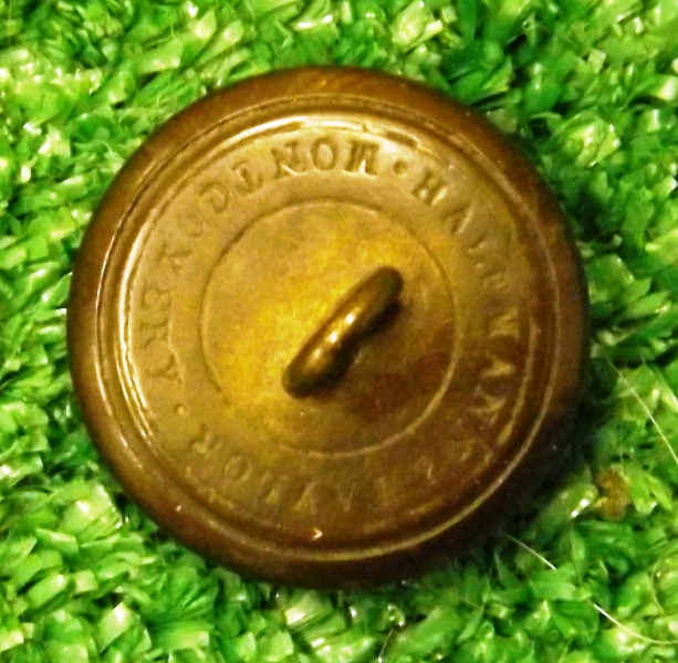 This next button is a fine example of the Independent Corps of Cadets cuff button. This fine example has a D. Evans and Co. Extra backmark on it. ref-button 58 $35.00