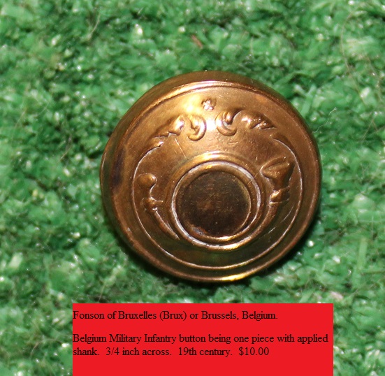 This next button is an early 20th century US used Military button with square shank on steel back. I've not seen another but there must be tons out there. Complete and with a great patina! ref-button 66 $5.00