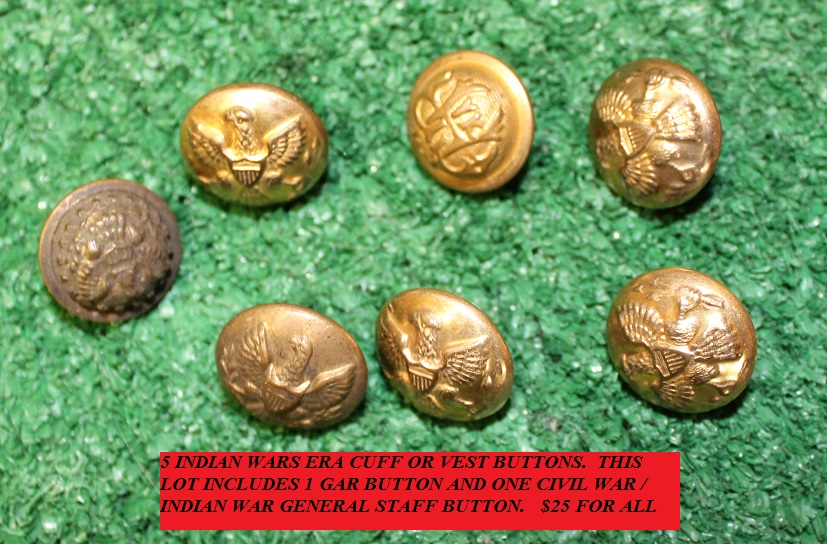 Here we have a group of 7 buttons including 5 Indian War era military buttons along with 1 GAR button and 1 General Staff Button.