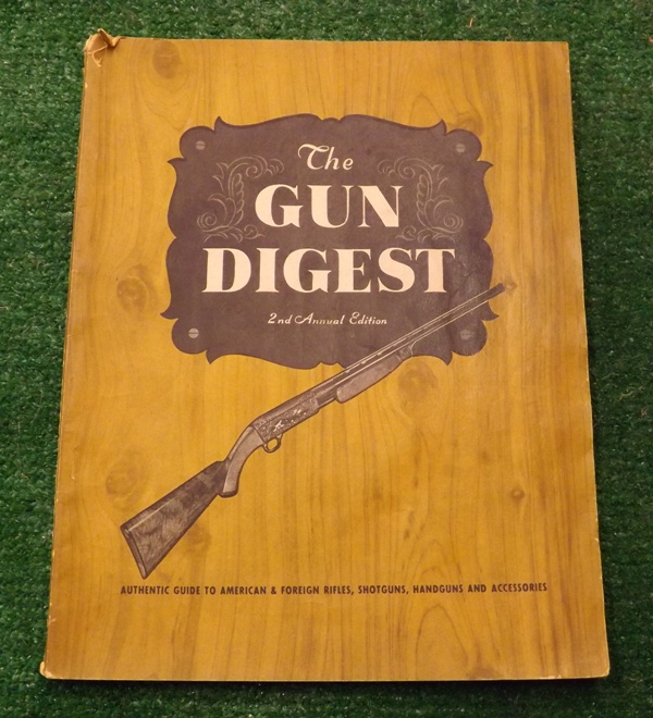 This is a good copy of THE GUN DIGEST 2ND ANNUAL EDITION . Publisher: Paul, Richmond & Company, Chicago, 1946 The covers are still attached to the book with dings on the corners. Minor wear to edges, a bit water staining inside but still not bad. The text is unmarked except for the original price of $1.25 in pencil. Staples well intact to interior pages. Many excellently clear photographs and illustrations. 163 pp. "Authentic guide to American & foreign rifles, shotguns, handguns and accessories." Revised since the end of WWII. This is still a real nice book! $30.00