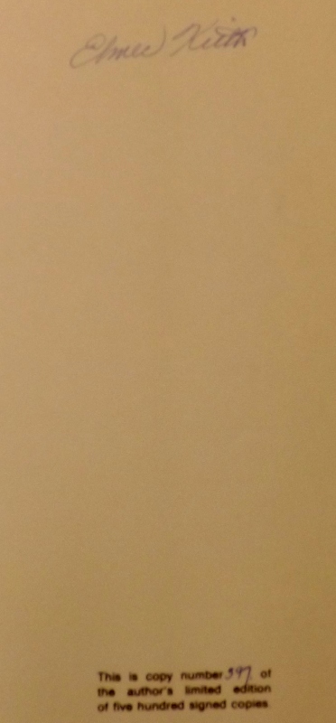 Here's an excellent book signed by the author and entitled ELMER KEITH - HIS LIFE STORY - "HELL, I WAS THERE". Petersen Publishing, 1979. Hardcover. Book Condition: Very Good. Dust Jacket Condition: Very Good. 1st Edition. Elmer Keith: Hell I Was There: His Life Story. Adventures of a Montana Cowboy who gained world fame as a Big game Hunter and expert in Guns & Ammo. This is a large format (10.5"x8.5") volume, one of the AUTHOR'S LIMITED EDITION OF 500 COPIES SIGNED by Elmer Keith on the front free end page. Profusely illustrated with photographs including a nice section on his African hunting with Truman Fowler. A very nice copy of the Author's limited edition Scarce. This one is rare to find and in such good condition!!! $495.00