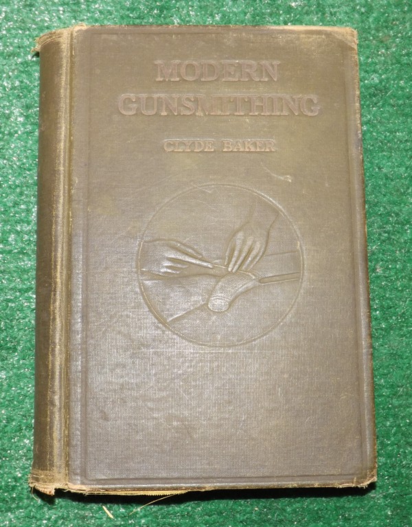 Here's an old book that's seen better days! This one has been used hard! This is a 1928 first edition MODERN GUNSMITHING by Clyde Baker. This one is hard bound with loose boards but there are still attached. There is the prevous owners name in side and the notation that it was a Christmas Gift in 1929. There are photographs and great text in the 530 pages of this great old book! Gunsmiths can still use this old book today! $30.00