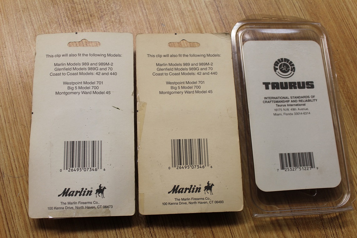 Here we have 3 new/old stock 7 round magazines! Two of the magazines are for the .22 Caliber Marlin Firearm models: 25N, 70, 70P (Papoose), 70HC, 880 and 995. These magazines will also fit the Marlin Models 989 and 989M-2 as well as the Glenfield Models 989G and 70. They will also fit the Coast to Coast Models 42 and 440 as well as the Westpoint Model 701, Big 5 Model 700 and the Montgomery Ward Model 45. Brand new in the package! $22 each! Check out he pics!