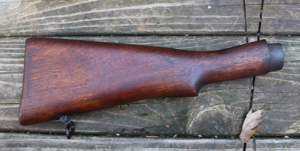 Here we have a British WW2 era SMLE#4 buttstock for the Enfield rifle. The walnut stock is in excellent condition having a small ding here and there with a small 7 painted on the reverse side. The only hardware left on this piece is the sling swivel. Sold as is. Take a look at the pics! $59.00