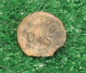 This is a damaged US marked pewter War of 1812 cuff button. There is damage to the outer edge of the button but as you can see the US is quite visible and the shank is still present although bent. This button was dug near Westpoint, NY. ref-button 56 $45.00