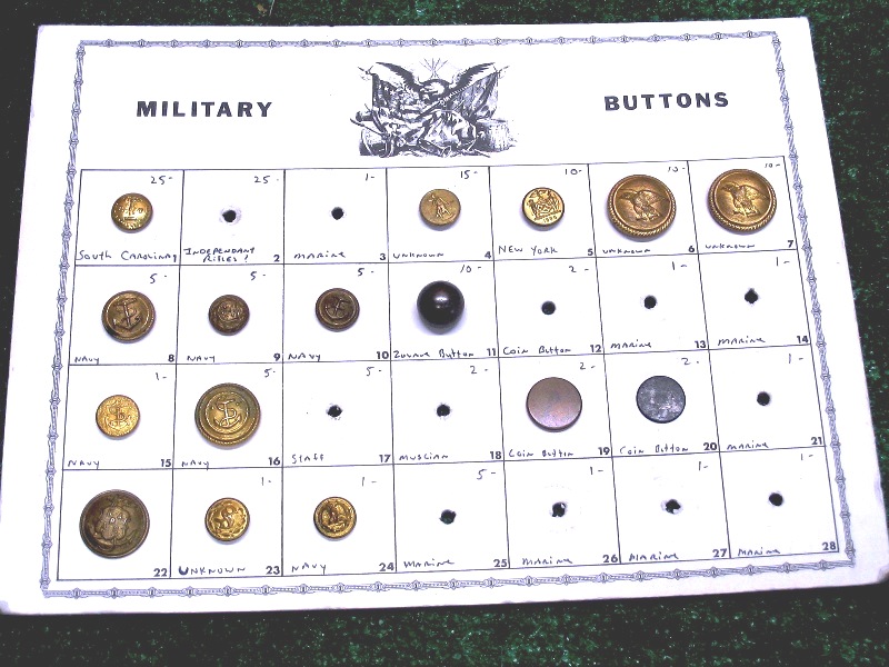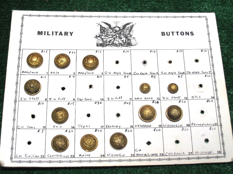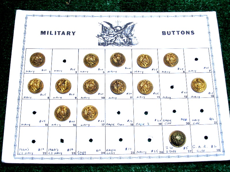 This card is almost exclusively Civil War Navy buttons except for one Indian War Staff Button. ref-button 78
