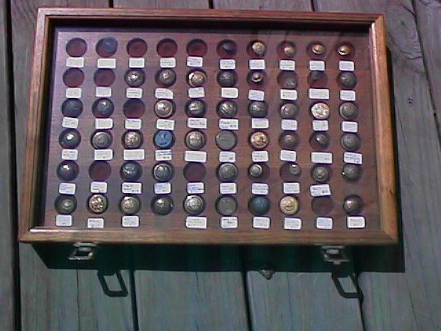 We picked up some buttons here in Central Indiana. Here we have a lot of State Seal Buttons that are post Civil War but more affordable then the ones made during the Civil War and they look just the same. Some of what we have is NORTH CAROLINA, OREGON, WEST VIRGINIA, LOUISIANA, SOUTH CAROLINA, MISSISSIPPI, MONTANA, COLORADO, ARIZONA, ETC. all with different backmarks. Let us know what you are looking for as we may have it. ref-button 14 $20 each.