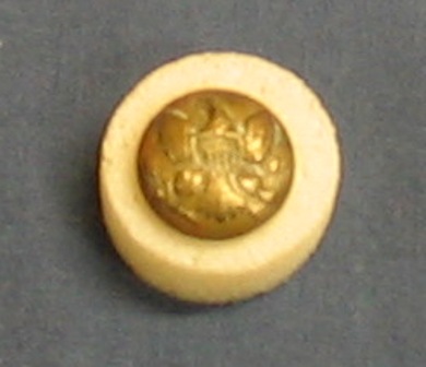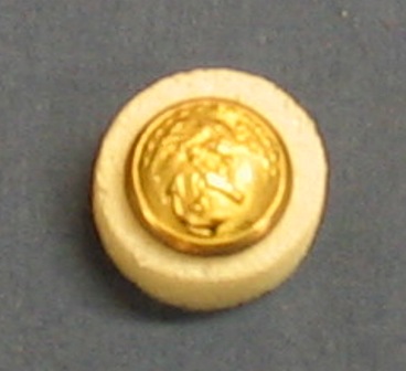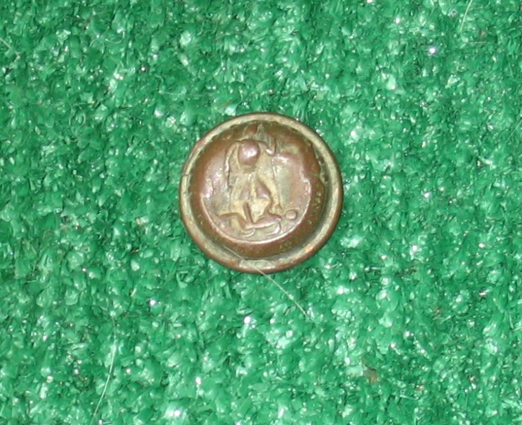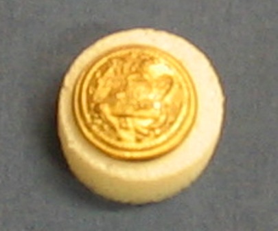 This next button is a fine example of the Independent Corps of Cadets cuff button. This fine example has a D. Evans and Co. Extra backmark on it. ref-button 58 $35.00