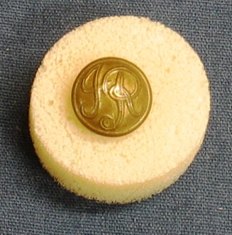 Here's a small cuff button marked IR in cursive standing for a militia unit called the Independent Rifles. Plain backmark. Nice little button! ref-button 31 $25.00