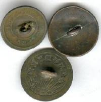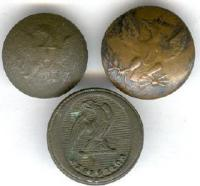 Here are 3 early buttons. There are 2 one piece eagle I's and 1 one piece New York button. The eagle I on the left is 3/4" it is dug and backmarked SUPERIOR QUALITY the 2nd eagle I is approx. 7/8" It is nondug and backmarked A.W. SPIES RICH. Both have straight shanks but show wear. The New York is approx 7/8" and backmarked RICH STANDARD It looks to have been dug and has a small ding under the eagle and a flattened shank. The 2 eagle I's are $25 each while the New York Button is $45.00 ref-button 17